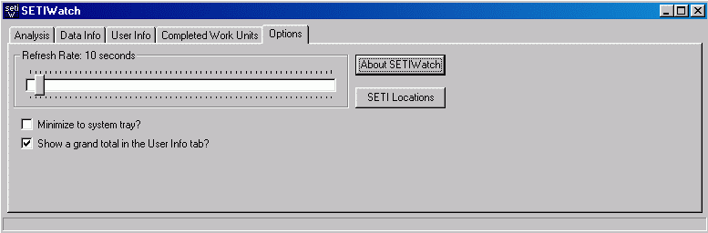 Hier befinden sich ein paar Infos z.B. die Versionsnummer, einen Link zur Seti Watch Homepage und wer möchte, kann Mark Loukko, dem Programmierer, auch ein paar Zeilen via Email schreiben.